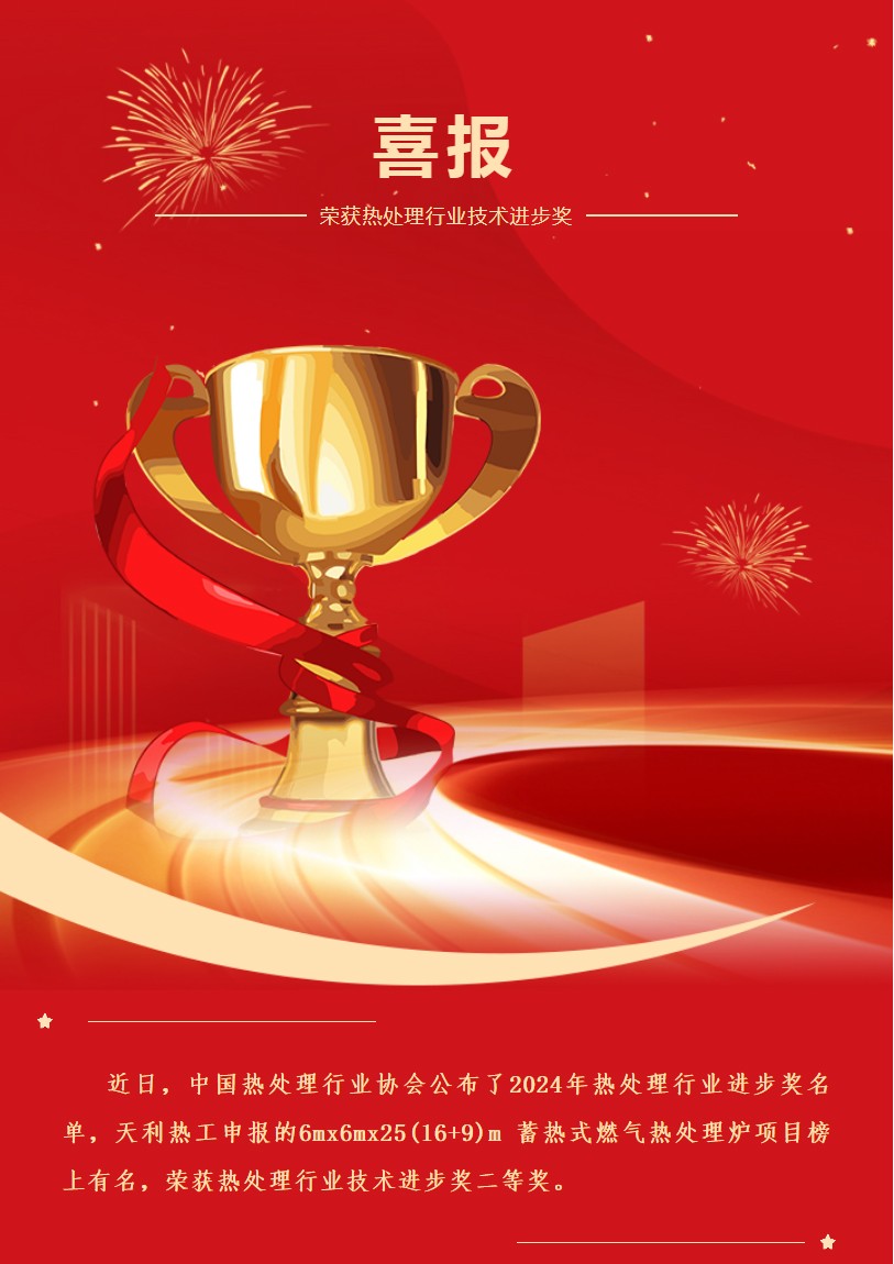 喜報 | 天利熱工榮獲熱處理行業(yè)技術(shù)進(jìn)步獎